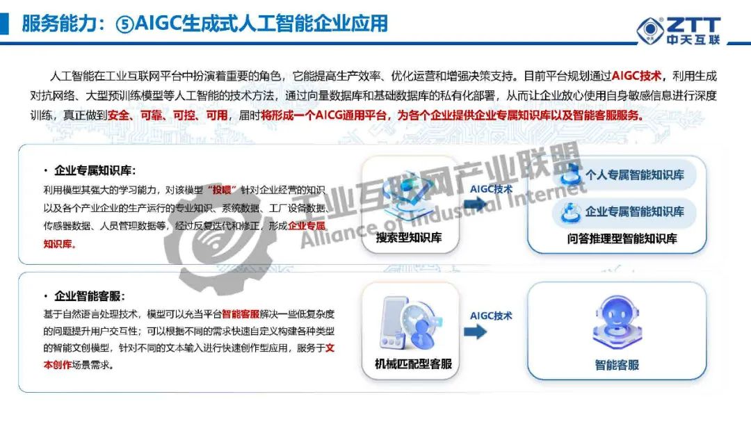 肖俊介紹,工業(yè)碼云平臺提供80+個營銷相關(guān)輕應(yīng)用功能。融入低代碼開發(fā)平臺,所見即所得,一鍵生成,可以實現(xiàn)防偽、防竄貨、全流程追溯、售后質(zhì)保、紅包促銷、積分營銷等功能。人工智能在工業(yè)互聯(lián)網(wǎng)平臺中扮演著重要的角色,它能提高生產(chǎn)效率、優(yōu)化運營和增強決策支持。目前平臺規(guī)劃通過AIGC技術(shù),利用生成對抗網(wǎng)絡(luò)、大型預(yù)訓(xùn)練模型等人工智能的技術(shù)方法,通過向量數(shù)據(jù)庫和基礎(chǔ)數(shù)據(jù)庫的私有化部署,從而讓企業(yè)放心使用自身敏感信息進(jìn)行深度訓(xùn)練,真正做到安全、可靠、可控、可用,屆時將形成一個AICG通用平臺,為各個企業(yè)提供企業(yè)專屬知識庫以及智能客服服務(wù)。