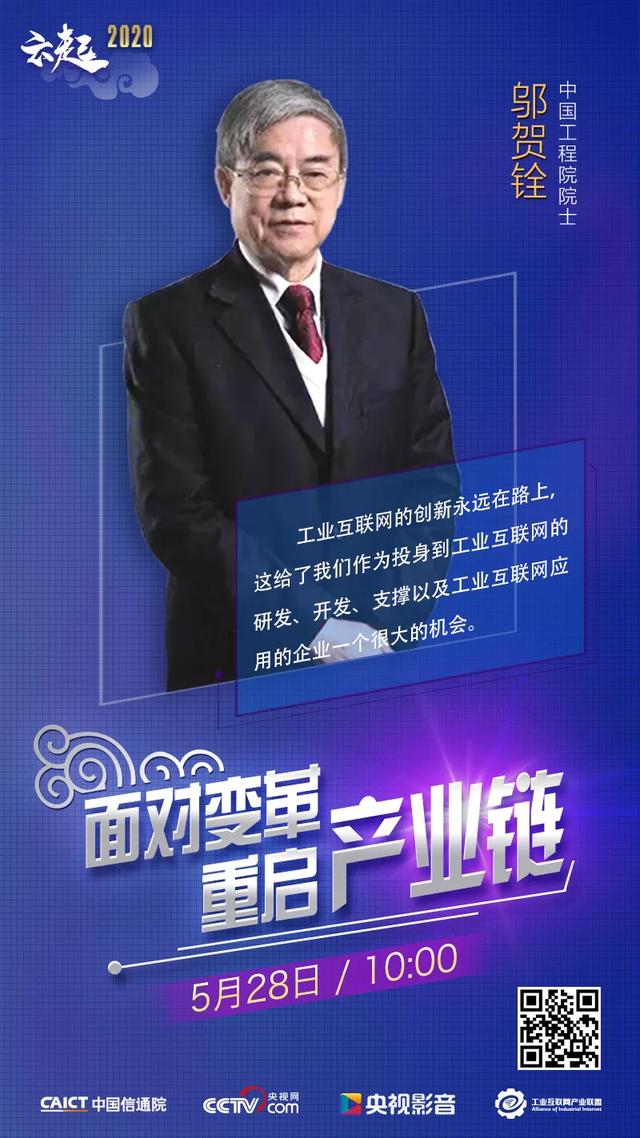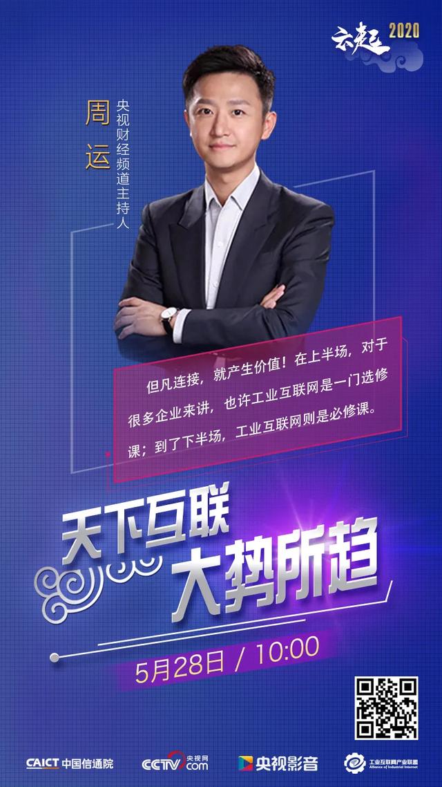 央視網攜手中國信息通信研究院推出“推動工業互聯網加快發展”巔峰對話。鄔賀銓、魯春叢、劉多、周云杰、梁寶俊、欒廣富、陸川等業界大咖和央視主持人周運討論新基建為中國經濟發展帶來的機遇和動能。5月28日10:00央視網多終端播出。