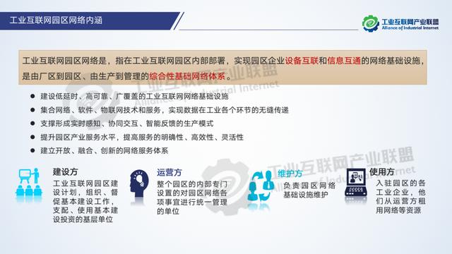 工業互聯網園區網絡是指在工業互聯網園區內部部署,實現園區企業設備互聯和信息互通的網絡基礎設施,是由廠區到園區、由生產到管理的綜合性基礎網絡體系。當前現有的園區網絡存在網絡架構層級割裂、寬帶性價比低、缺乏系統繼承性企業、標準不統一、缺乏安全保障體系等問題,園區網絡未來的目標是打造新“三通一平”工業園區,即通話、通網、通云、統一服務平臺:建設低延時、高可靠、廣覆蓋的工業互聯網網絡基礎設施;集合網絡、軟件、物聯網技術和服務,實現數據在工業各個環節的無縫傳遞;支撐形成實時感知、協同交互、智能反饋的生產模式;提升園區產業服務水平,提高服務的明確性、高效性、靈活性;建立開放、融合、創新的網絡服務體系。