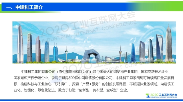 點擊下方鏈接回看演講視頻: 專家說 “中建科工根據'數字化、信息化、智能化'的設計理念,充分利用工業PON網絡、智能生產管理系統、工業大數據平臺等先進技術,構建基于云架構的大數據分析平臺。通過建立工業互聯網大數據分析平臺,進行數據采集、分析、決策,優化提升可制造性和可服務性,形成企業智能管控閉環,提高生產效率,降低運營成本。” 以下是演講PPT 敬請閱讀
