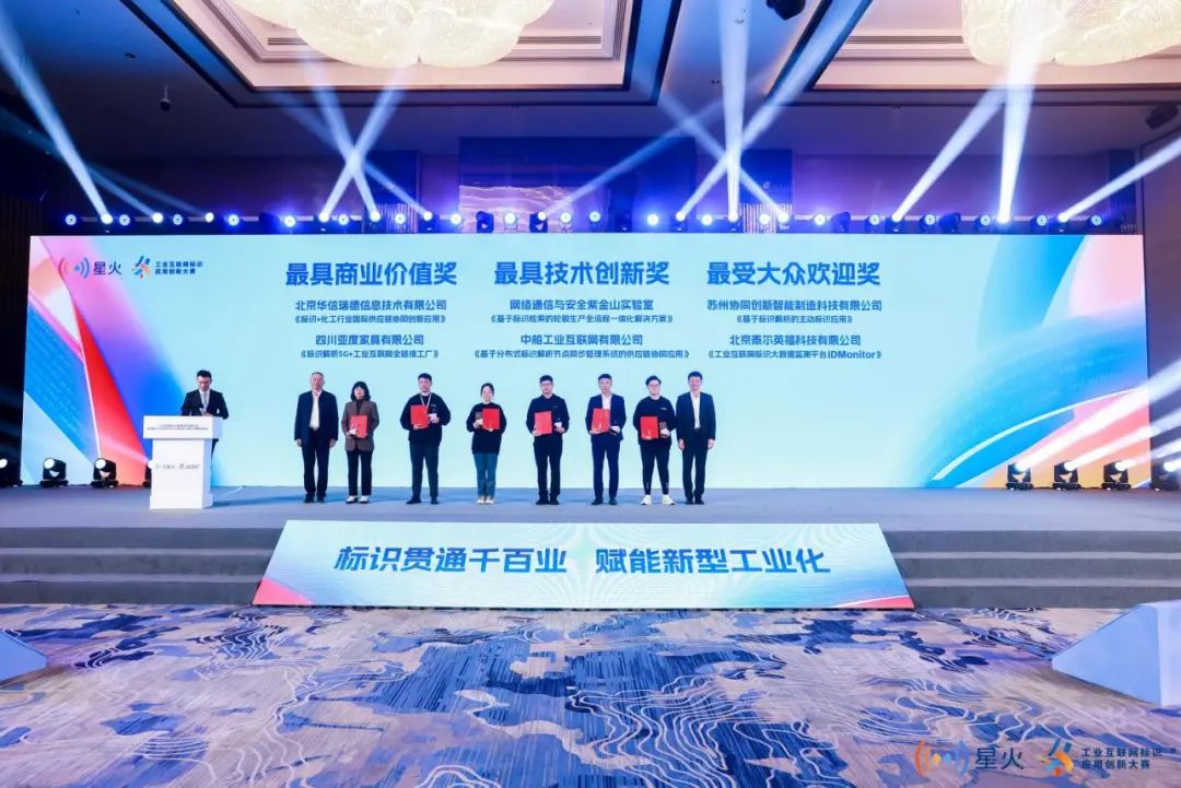 北京華信瑞德信息技術(shù)有限公司的《標(biāo)識(shí)+化工行業(yè)國際供應(yīng)鏈協(xié)同創(chuàng)新應(yīng)用》,四川亞度家具有限公司的《標(biāo)識(shí)解析5G+工業(yè)互聯(lián)網(wǎng)全鏈接工廠》獲最具商業(yè)價(jià)值獎(jiǎng);網(wǎng)絡(luò)通信與安全紫金山實(shí)驗(yàn)室的《基于標(biāo)識(shí)檢索的輪轂生產(chǎn)全流程一體化解決方案》,中船工業(yè)互聯(lián)網(wǎng)有限公司的《基于分布式標(biāo)識(shí)解析節(jié)點(diǎn)同步管理系統(tǒng)的供應(yīng)鏈協(xié)同應(yīng)用》獲最具技術(shù)創(chuàng)新獎(jiǎng);蘇州協(xié)同創(chuàng)新智能制造科技有限公司的《基于標(biāo)識(shí)解析的主動(dòng)標(biāo)識(shí)應(yīng)用》,北京泰爾英福科技有限公司的《工業(yè)互聯(lián)網(wǎng)標(biāo)識(shí)大數(shù)據(jù)監(jiān)測平臺(tái)IDMonitor》獲最受大眾歡迎獎(jiǎng)。
