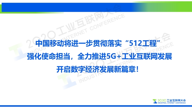 “工業互聯網是5G應用范圍最廣、解決方案最成熟、價值提升最顯著的領域之一。5G不僅是運營商的5G,更是千行百業的5G。在推進‘5G+工業互聯網’創新發展的實踐中,中國移動緊抓新基建帶來的空前機遇,已通過5G垂直行業布局,初步形成了示范效應,并努力實施‘五個升級’策略,即加快網絡升級、平臺升級、應用升級、模式升級和生態升級,推動‘5G+工業互聯網’加速發展。未來,中國移動將繼續深化貫徹落實‘512工程’,強化使命擔當,攜手各界合作伙伴,全力推進‘5G+工業互聯網’發展。”