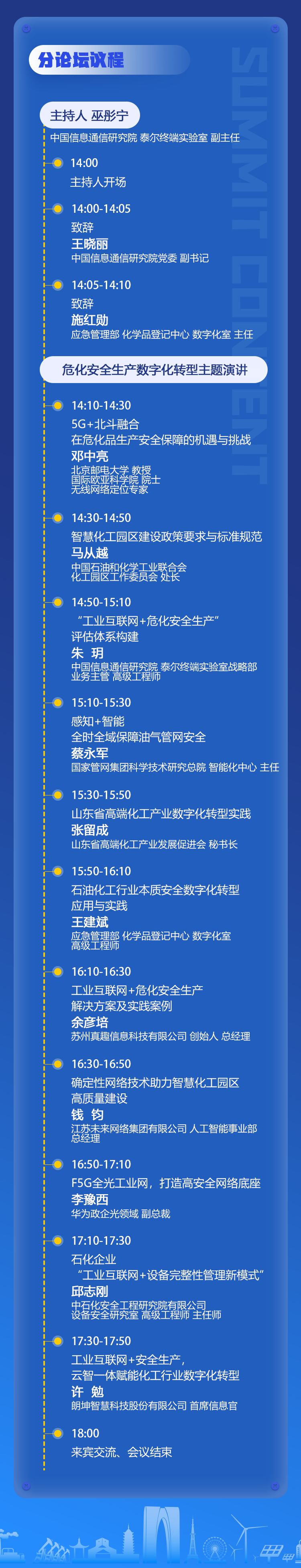 為認(rèn)真貫徹落實(shí)中共中央辦公廳、國(guó)務(wù)院辦公廳《關(guān)于全面加強(qiáng)危險(xiǎn)化學(xué)品安全生產(chǎn)工作的意見(jiàn)》,加快推進(jìn)危險(xiǎn)化學(xué)品安全生產(chǎn)信息化、智能化建設(shè)與應(yīng)用工作,根據(jù)工業(yè)和信息化部、應(yīng)急管理部《“工業(yè)互聯(lián)網(wǎng)+安全生產(chǎn)”行動(dòng)計(jì)劃(2021-2023年)》和應(yīng)急管理部《“工業(yè)互聯(lián)網(wǎng)+危化安全生產(chǎn)”試點(diǎn)建設(shè)方案》,結(jié)合廣大危險(xiǎn)化學(xué)品生產(chǎn)企業(yè)的實(shí)際需求,推動(dòng)危險(xiǎn)化學(xué)品企業(yè)實(shí)現(xiàn)數(shù)字化轉(zhuǎn)型、智能化升級(jí),提高我國(guó)在危險(xiǎn)化學(xué)品安全治理能力,擬于2023年工業(yè)互聯(lián)網(wǎng)大會(huì)期間,6月15日在蘇州太湖國(guó)際會(huì)議中心舉辦“工業(yè)互聯(lián)網(wǎng)+危化安全生產(chǎn)數(shù)字化轉(zhuǎn)型論壇”,論壇旨在通過(guò)政策研讀、行業(yè)前瞻、成果展示、創(chuàng)新案例發(fā)布等形式,展示我國(guó)危險(xiǎn)化學(xué)品生產(chǎn)領(lǐng)域安全應(yīng)急產(chǎn)業(yè)的現(xiàn)狀以及發(fā)展成就,同時(shí)聚焦危化品生產(chǎn)領(lǐng)域核心技術(shù)及前沿應(yīng)用,發(fā)布行業(yè)創(chuàng)新成果,交流經(jīng)驗(yàn)展望未來(lái),助力科技成果產(chǎn)業(yè)化,加強(qiáng)政產(chǎn)學(xué)研用深度融合,推動(dòng)危化品產(chǎn)業(yè)高質(zhì)量發(fā)展。 活動(dòng)主題:危化安全生產(chǎn)任重道遠(yuǎn),數(shù)字轉(zhuǎn)型升級(jí)大勢(shì)所趨承辦單位:中國(guó)信息通信研究院泰爾終端實(shí)驗(yàn)室、山東省高端化工產(chǎn)業(yè)發(fā)展促進(jìn)會(huì)時(shí)間地點(diǎn):2023年6月15日14:00-18:00(和合廳CD)