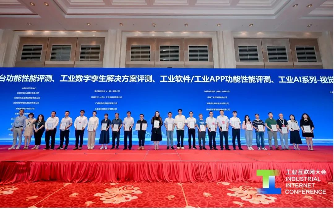 本次公布的評測結果共涵蓋工業互聯網平臺功能性能評測結果、工業數字解決方案孿生評測結果、工業軟件/工業APP功能性能評測結果、工業AI系列產品評測結果四部分,工業互聯網產業聯盟有關領導現場為獲證企業頒發了證書。