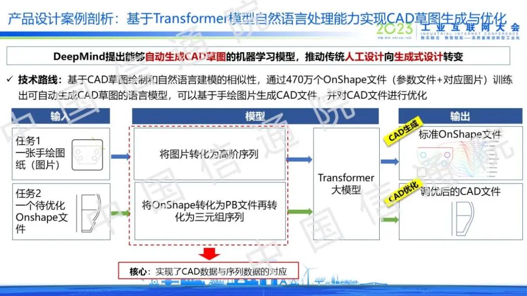 以產(chǎn)品設(shè)計(jì)場(chǎng)景為例,通過(guò)利用Transformer模型的自然語(yǔ)言處理能力提升研發(fā)效率。其本質(zhì)是將輸入的CAD數(shù)據(jù)轉(zhuǎn)化為序列數(shù)據(jù)以充分適配Transformer模型,通過(guò)構(gòu)建研發(fā)領(lǐng)域大模型實(shí)現(xiàn)CAD圖像生成與優(yōu)化功能,這意味著傳統(tǒng)人工設(shè)計(jì)正加速向生成式設(shè)計(jì)轉(zhuǎn)變。