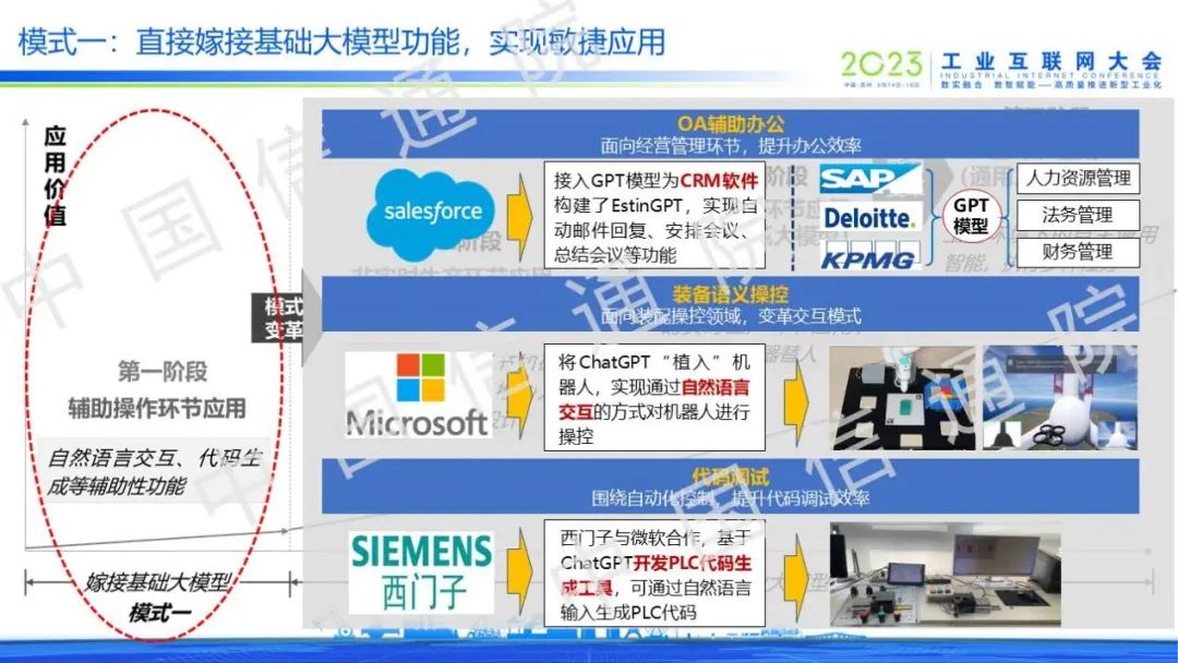 以直接嫁接基礎(chǔ)大模型功能為主的模式一是利用基礎(chǔ)大模型的自然語(yǔ)言理解、代碼生成等能力,實(shí)現(xiàn)OA輔助辦公、裝備語(yǔ)義操控和代碼調(diào)試等探索應(yīng)用,但均已提升效率為主,尚未觸及工業(yè)核心環(huán)節(jié)。