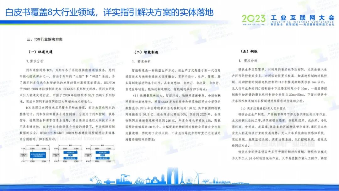 “TSN技術經過18年的發展,在很多領域有了相關的應用,但實際上真正形成批量和大面積的應用還是比較少,急需要形成產業化應用。在這種情況下,聯盟網絡組“時間敏感網絡(TSN)產業鏈名錄”計劃進行了相關的測試,相關測試床產出了很多的成果。本書對TSN技術在軌道交通、智能制造、汽車車載、煤礦、鋼鐵、電力、裝備制造、港口8個行業的應用進行了介紹,不同行業的應用特點不同。”