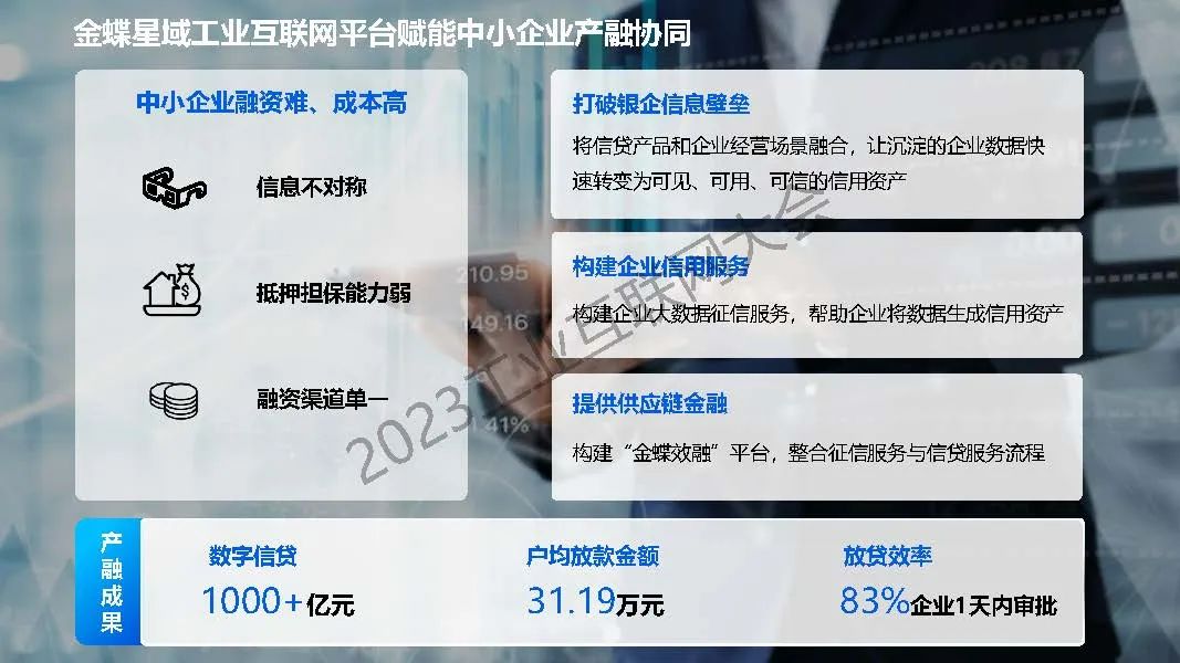劉仲文表示工業(yè)互聯(lián)網推動領航企業(yè)向全要素、全流程、全生態(tài)數(shù)字化發(fā)展,加速中小企業(yè)產業(yè)集群模式轉變與可持續(xù)發(fā)展。金蝶星域工業(yè)互聯(lián)網平臺是以金蝶云蒼穹PaaS平臺為底座,為二十余行業(yè)的大型企業(yè)、中型企業(yè)和小微企業(yè)提供9大領域全流程數(shù)字化服務,賦能中小企業(yè)產融協(xié)同,實現(xiàn)數(shù)字化轉型與升級。