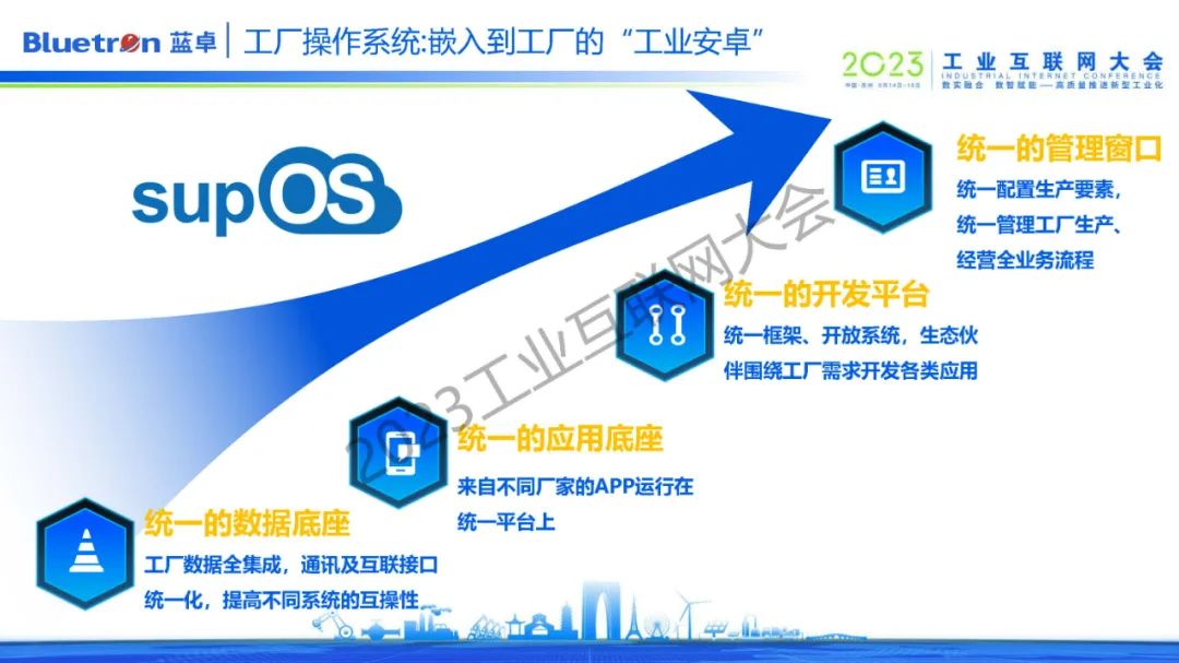 這也是supOS工業(yè)操作系統(tǒng)的產(chǎn)品理念,目前藍(lán)卓正通過4大方向持續(xù)探索一條大規(guī)模、低成本、易復(fù)制的數(shù)字化轉(zhuǎn)型路徑。