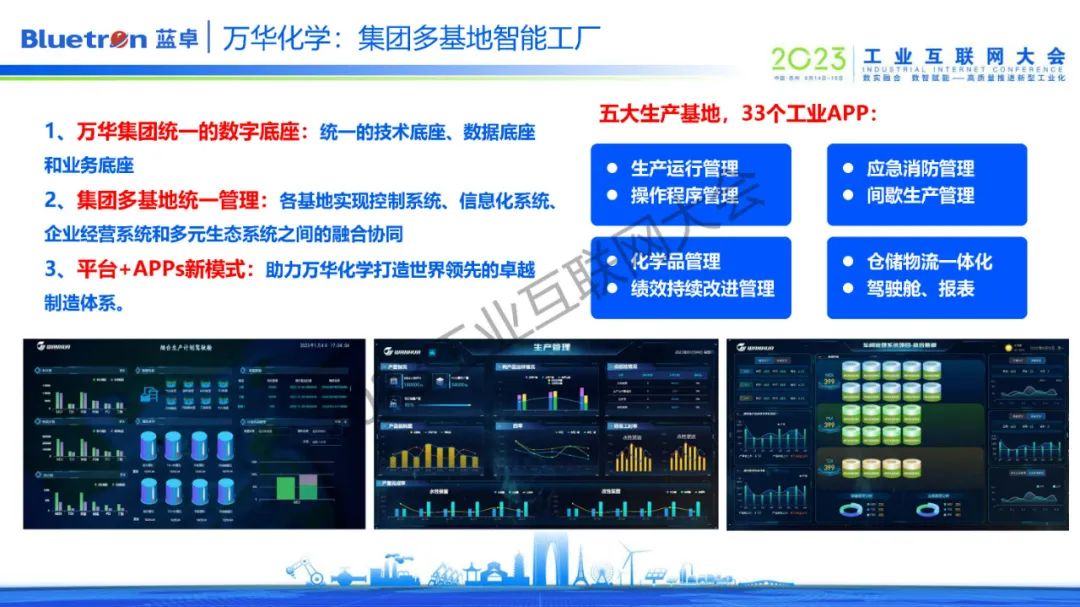 萬華集團(tuán)是典型的一總部、多基地式集團(tuán)企業(yè),通過supOS工業(yè)操作系統(tǒng)打造統(tǒng)一的技術(shù)底座、數(shù)據(jù)底座和業(yè)務(wù)底座,滿足萬華集團(tuán)以及各個(gè)生產(chǎn)基地的生產(chǎn)數(shù)據(jù)、管理數(shù)據(jù)、運(yùn)營(yíng)數(shù)據(jù)的集中管理、治理、分析與應(yīng)用開發(fā)需求。目前,一集團(tuán)多租戶模式已成功應(yīng)用于煙臺(tái)、寧波、福州、珠海、眉山五個(gè)基地,并打造了生產(chǎn)運(yùn)行管理、應(yīng)急消防管理、化學(xué)品管理、倉(cāng)儲(chǔ)物流一體化等33個(gè)工業(yè)APPs,助力萬華打造世界領(lǐng)先的卓越制造體系。