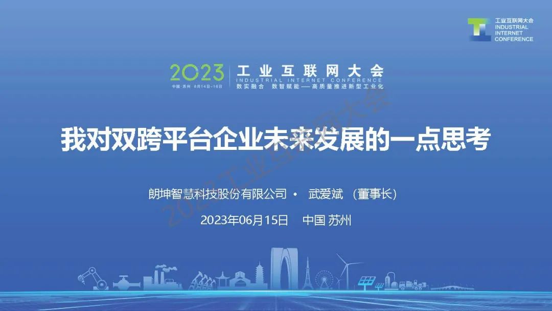 6月15日,在2023工業(yè)互聯(lián)網(wǎng)大會“工業(yè)互聯(lián)網(wǎng)最佳實(shí)踐高端論壇”上,朗坤智慧科技股份有限公司董事長武愛斌發(fā)表了《我對雙跨平臺企業(yè)未來發(fā)展的一點(diǎn)思考》的主題演講。