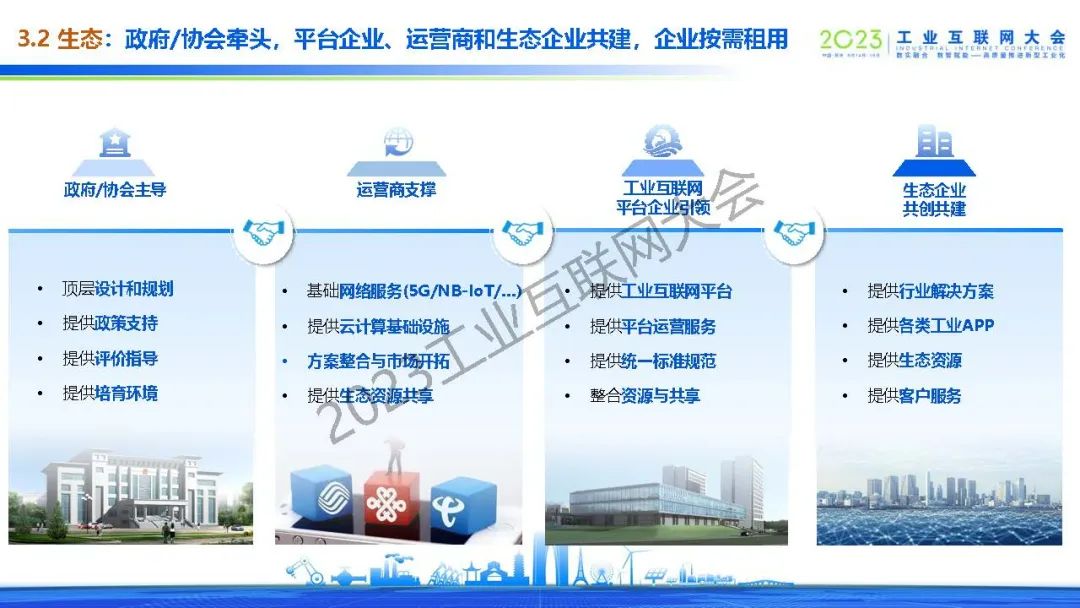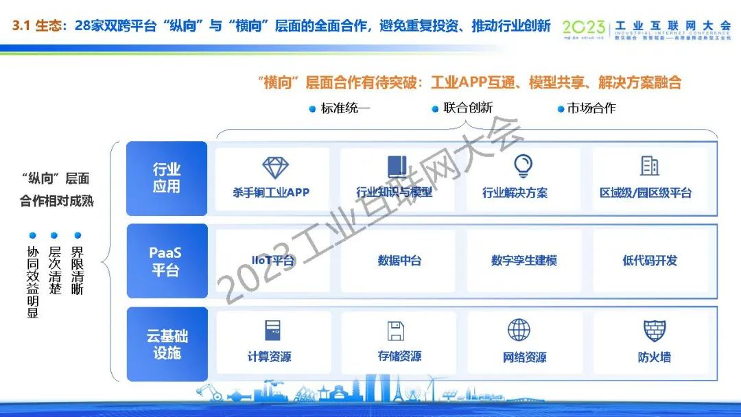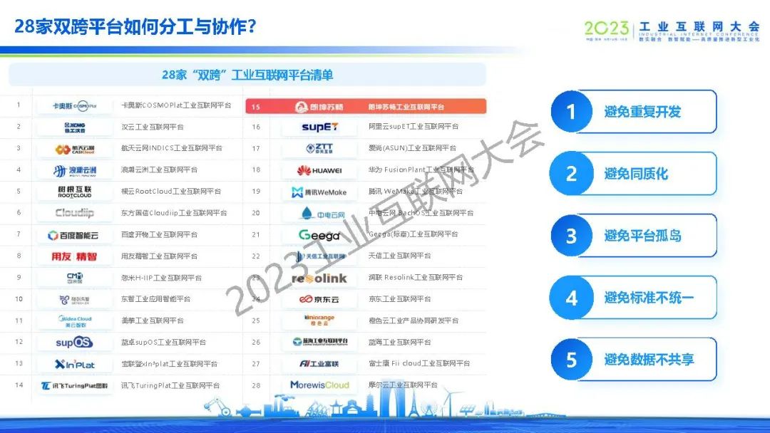 武愛斌介紹了雙跨平臺未來走深向?qū)嵃l(fā)展的三類挑戰(zhàn):工業(yè)賦能深度待提升、互聯(lián)網(wǎng)技術(shù)融合待加強(qiáng)和互聯(lián)網(wǎng)模式探索待深化。提出了促進(jìn)雙跨平臺創(chuàng)新、可持續(xù)發(fā)展的策略,建議數(shù)據(jù)要素和模型的價(jià)值要“走出圍墻”,賦能產(chǎn)業(yè)鏈伙伴和區(qū)域數(shù)字經(jīng)濟(jì),28家雙跨平臺“縱向”與“橫向”層面的全面合作,避免重復(fù)投資、推動行業(yè)創(chuàng)新,提出由政府/協(xié)會牽頭,平臺企業(yè)、運(yùn)營商和生態(tài)企業(yè)共建,企業(yè)按需租用的新生態(tài)。