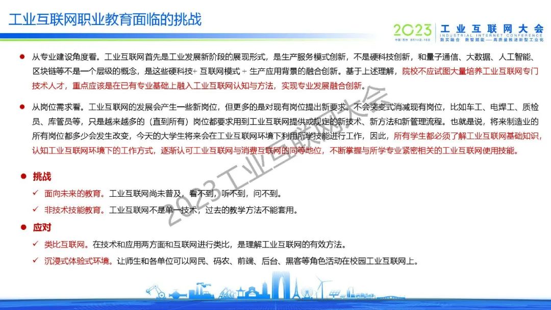 魏磊表示工業(yè)互聯(lián)網(wǎng)首先是工業(yè)發(fā)展新階段的展現(xiàn)形式,是生產(chǎn)服務(wù)模式創(chuàng)新,不是硬科技創(chuàng)新,和量子通信、大數(shù)據(jù)、人工智能、區(qū)塊鏈等不是一個(gè)層級(jí)的概念,是這些硬科技+ 互聯(lián)網(wǎng)模式 + 生產(chǎn)應(yīng)用背景的融合創(chuàng)新。基于上述理解,院校不應(yīng)試圖大量培養(yǎng)工業(yè)互聯(lián)網(wǎng)專門技術(shù)人才,重點(diǎn)應(yīng)該是在已有專業(yè)基礎(chǔ)上融入工業(yè)互聯(lián)網(wǎng)認(rèn)知與方法,實(shí)現(xiàn)專業(yè)發(fā)展融合創(chuàng)新。同時(shí),所有學(xué)生都必須了解工業(yè)互聯(lián)網(wǎng)基礎(chǔ)知識(shí),認(rèn)知工業(yè)互聯(lián)網(wǎng)環(huán)境下的工作方式,逐漸認(rèn)可工業(yè)互聯(lián)網(wǎng)與消費(fèi)互聯(lián)網(wǎng)的同等地位,不斷掌握與所學(xué)專業(yè)緊密相關(guān)的工業(yè)互聯(lián)網(wǎng)使用技能。