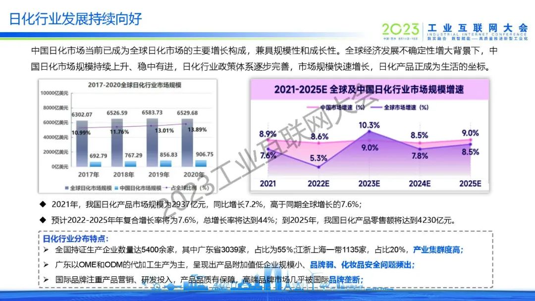 日化行業是我國輕工業重要組成部分之一,規模達數千億。本次日化行業融合實踐路徑的首次亮相,帶來了日化產業生態發展新范式。未來,“工業互聯網+日化”將成為行業轉型發展的重要趨勢,日化產業將在擁抱工業互聯網過程中迎來新機遇,走向高質量發展道路。
