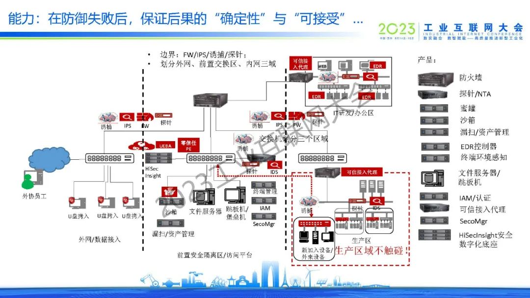 王雨晨指出,安全是產業(yè)數(shù)字化轉型中的“馬六甲海峽”,越有價值的系統(tǒng),面臨的安全風險越大。對抗策略也需要超越線性對抗,從盡力對抗風險,到確保能承受風險。建立可信網絡:從一維線性的威脅防御,到三維系統(tǒng)性的安全保障,前置隔離區(qū)爭取最好情況,內網微隔離確保最壞結果可接受,運營管理區(qū)實現(xiàn)動態(tài)安全。