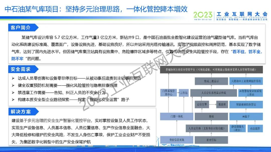 郭賓指出,安全意識不強、責任落實不力、安全投入不足、監管執法不到位的情況普遍存在,安全生產面臨的形勢依然嚴峻復雜。堅持工業互聯網與安全生產同規劃、同部署、同發展,通過多元治理的安全生產智慧化管控平臺構建基于工業互聯網的安全感知、監測、預警、處置及評估體系,提升工業企業安全生產數字化、網絡化、智能化水平,形成完善的企業安全支撐和服務體系,實現更高質量、更有效率、更可持續、更為安全的發展模式。