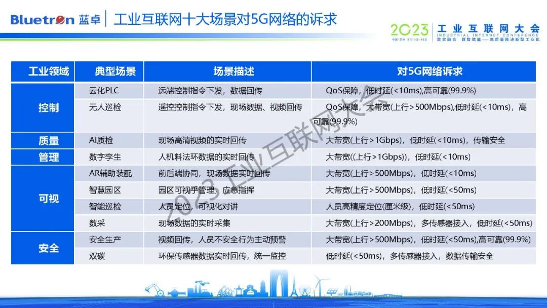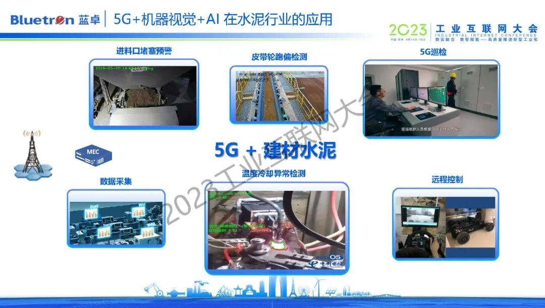 在蕪湖的一家水泥企業(yè),supOS通過(guò)機(jī)器識(shí)別的方式,對(duì)進(jìn)料口堵塞、皮帶輪跑偏進(jìn)行檢測(cè)和預(yù)警,同時(shí),在特殊環(huán)境下通過(guò)視覺(jué)識(shí)別,根據(jù)火焰顏色建模分析,實(shí)時(shí)監(jiān)控設(shè)備的溫度與冷卻情況,確保企業(yè)平穩(wěn)生產(chǎn)。而這些環(huán)境都需要5G大帶寬、低延時(shí)的特性。