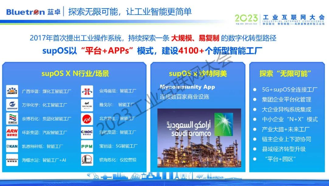 目前,藍(lán)卓正以“平臺(tái)+APP”的模式在全球范圍內(nèi)打造了4100個(gè)新型智能工廠,基于工業(yè)操作系統(tǒng)的特性,藍(lán)卓也在不斷探索supOS與5G的創(chuàng)新融合,未來(lái)也希望與更多的伙伴通力合作,共同高質(zhì)量推進(jìn)我國(guó)新型工業(yè)化的建設(shè)。