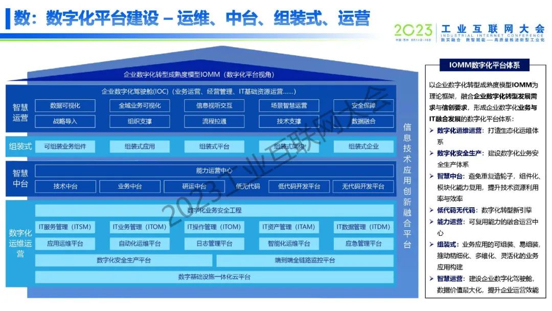6月14日,在2023工業互聯網大會“工業互聯網助力企業數字化轉型高端論壇”上,中國信息通信研究院云計算與大數據研究所副所長栗蔚發表了《企業數字化能力和運營效果成熟度模型IOMM 2.0發布與解讀》的主題演講。