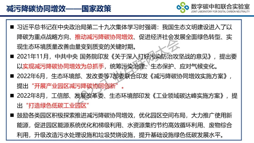 周濤指出我國園區(qū)減污降碳存在問題:1、園區(qū)底數(shù)不清,基礎(chǔ)薄弱,2、減污降碳協(xié)同技術(shù)政策體系不完善,3、缺乏系統(tǒng)減污降碳全流程管控體系,4、園區(qū)類型多樣,發(fā)展階段不一。園區(qū)應(yīng)該盡快摸清物質(zhì)流,能量流路徑,查找可以協(xié)同的部分,尋找可行技術(shù)、系統(tǒng)集成、優(yōu)化物流能流,測算和評估減污、降碳的效果與成本,確保可行性與保障措施。