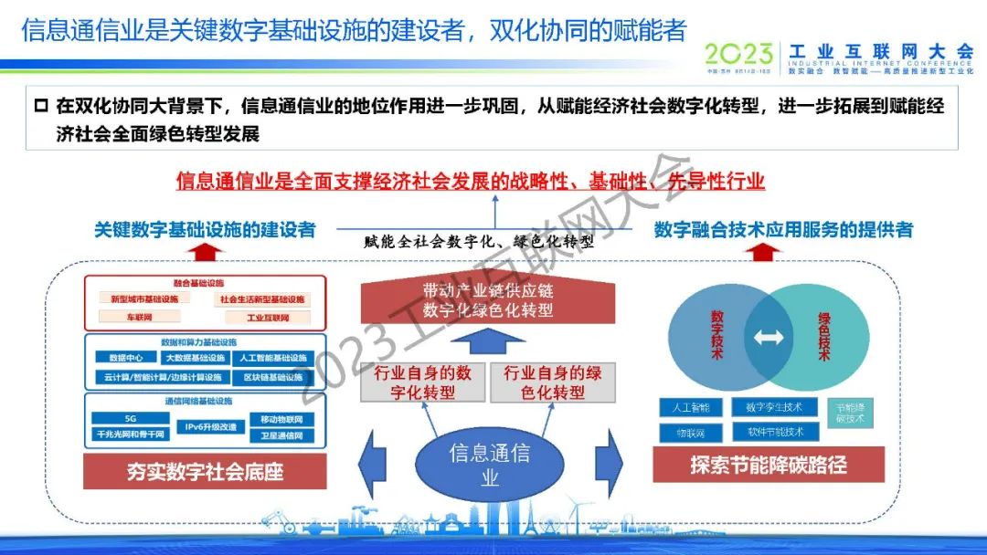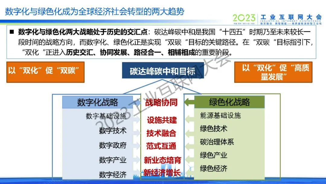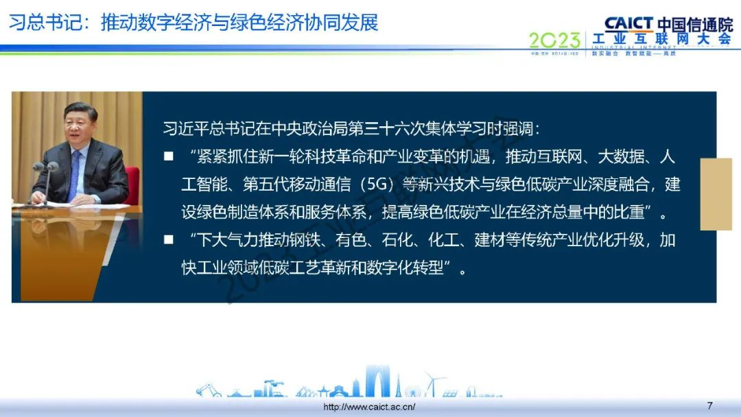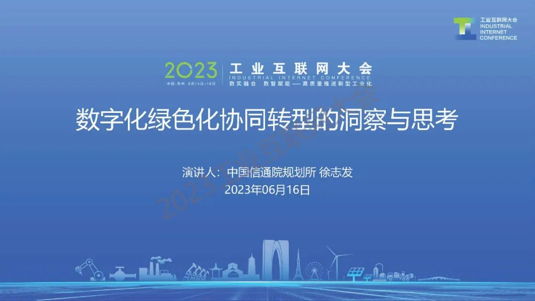 6月16日,在2023工業(yè)互聯(lián)網(wǎng)大會(huì)“數(shù)字助力碳達(dá)峰碳中和高端論壇”上,中國(guó)信息通信研究院產(chǎn)業(yè)與規(guī)劃研究所所長(zhǎng)、碳達(dá)峰碳中和發(fā)展中心主任徐志發(fā)發(fā)表了《數(shù)字化綠色化協(xié)同轉(zhuǎn)型的洞察與思考》的主旨演講。