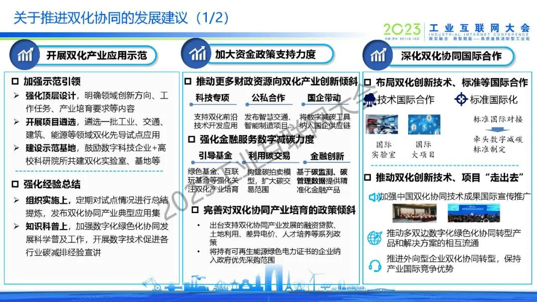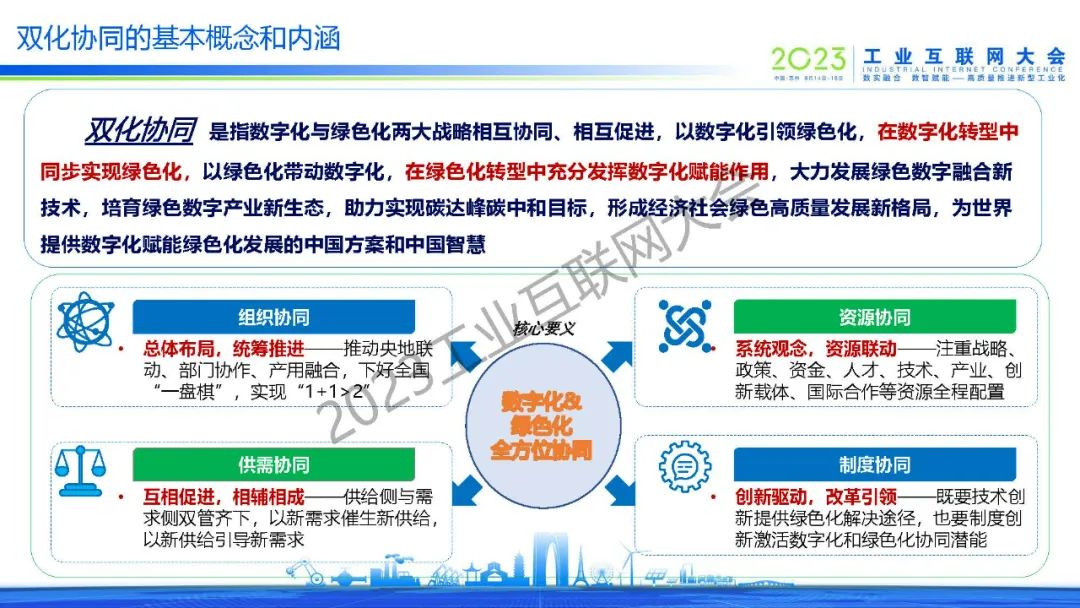 徐志發(fā)指出,雙化協(xié)同是指數(shù)字化與綠色化兩大戰(zhàn)略相互協(xié)同、相互促進(jìn),以數(shù)字化引領(lǐng)綠色化,在數(shù)字化轉(zhuǎn)型中同步實(shí)現(xiàn)綠色化,以綠色化帶動(dòng)數(shù)字化,在綠色化轉(zhuǎn)型中充分發(fā)揮數(shù)字化賦能作用,大力發(fā)展綠色數(shù)字融合新技術(shù),培育綠色數(shù)字產(chǎn)業(yè)新生態(tài),助力實(shí)現(xiàn)碳達(dá)峰碳中和目標(biāo),形成經(jīng)濟(jì)社會(huì)綠色高質(zhì)量發(fā)展新格局,為世界提供數(shù)字化賦能綠色化發(fā)展的中國(guó)方案和中國(guó)智慧。