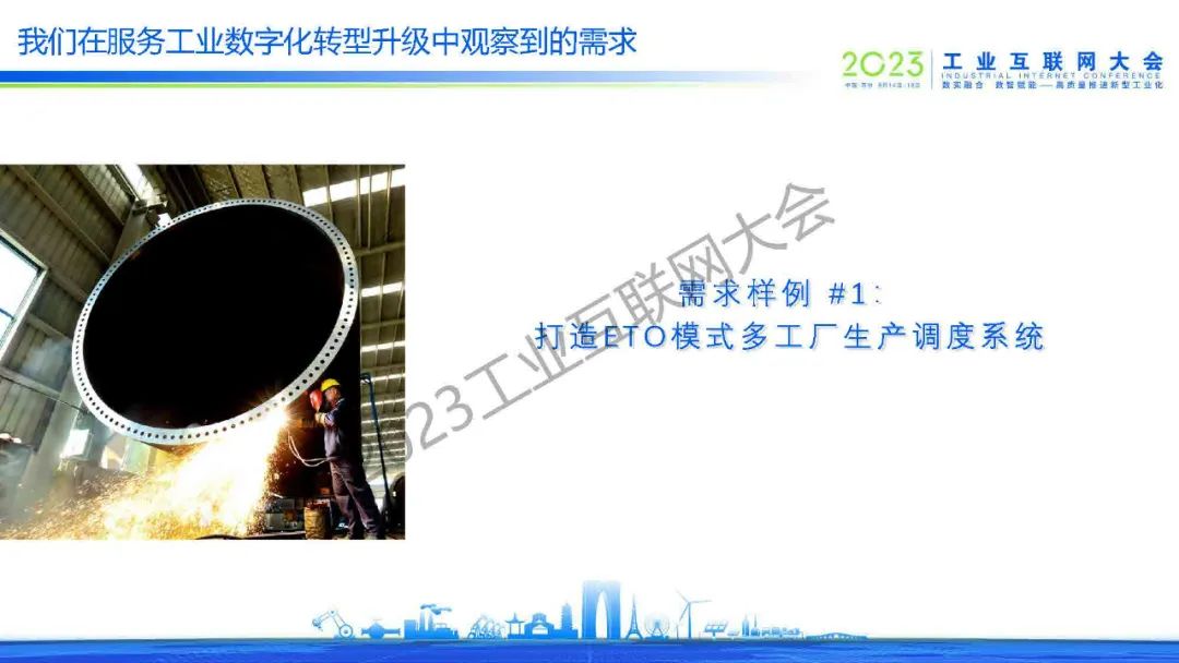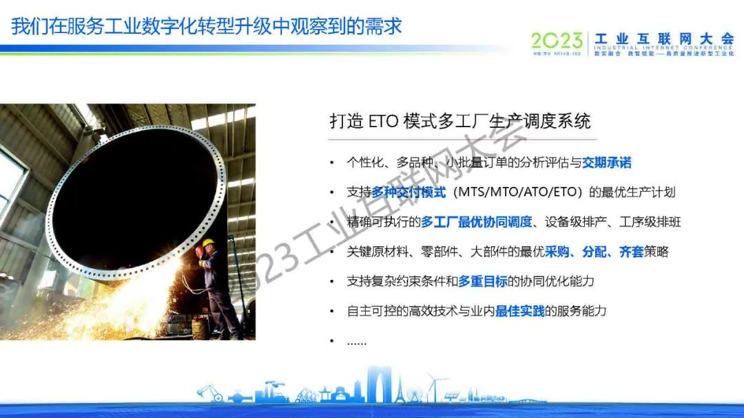“裝備制造企業的數字化轉型就是打造 ETO 模式多工廠生產調度系統。它涵蓋了很多信息的抽象性需求描述,可能包括多品種,小批量訂單的交期承諾,可能包括個性化、多品種、小批量訂單的分析評估與交期承諾、支持多種交付模式(MTS/MTO/ATO/ETO)的最優生產計劃、精確可執行的多工廠最優協同調度、設備級排產、工序級排班等。“