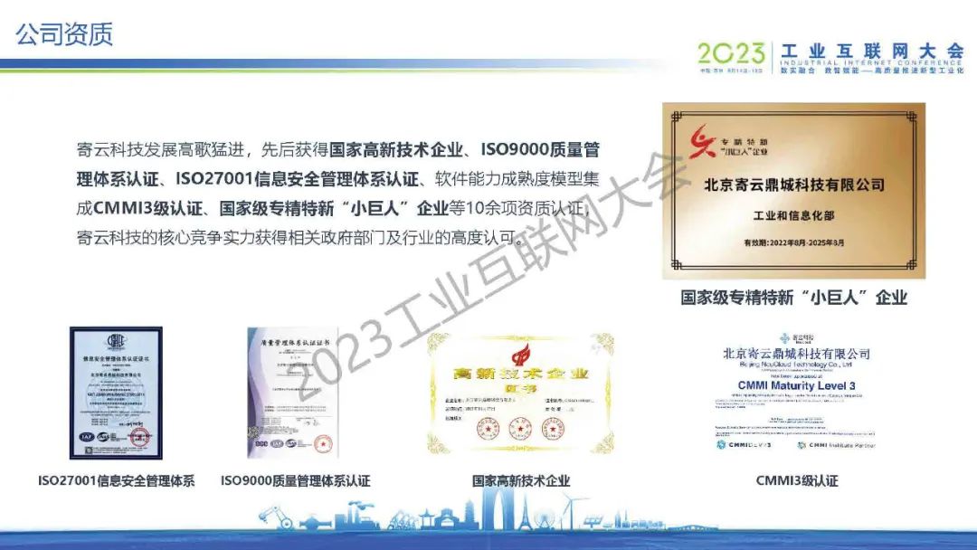 6月14日,在2023工業互聯網大會“工業互聯網產融推進論壇”上,北京寄云鼎城科技有限公司CEO時培昕發表了《從裝備智能化到生產智能化》的主題演講。