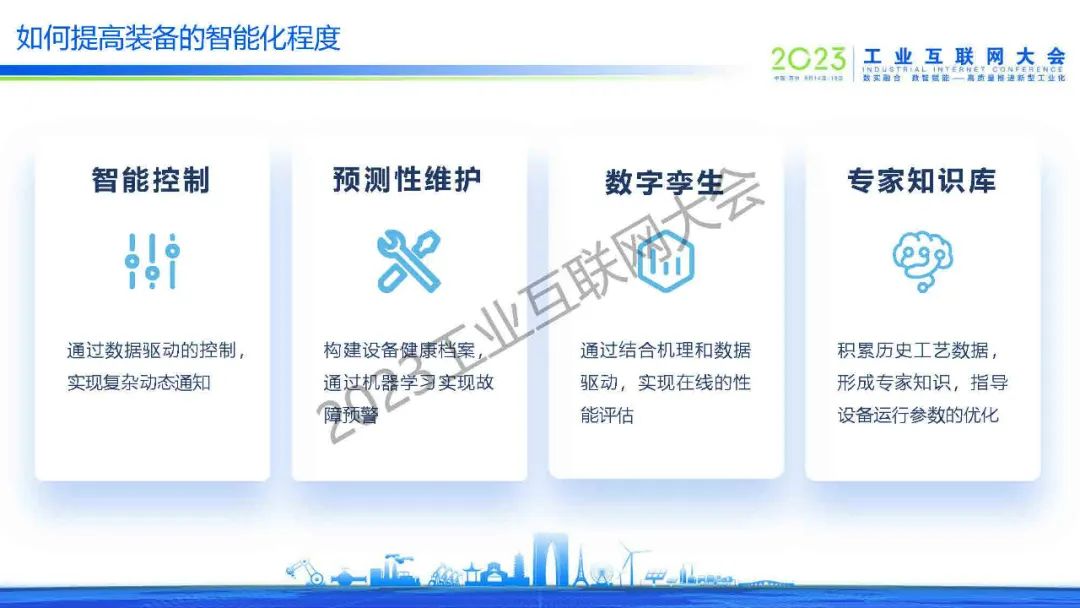 時培昕指出,提高裝備的智能化程度需要通過智能控制、預測性維護、數字孿生和專家知識庫這四個方面。他也提到,優化先進制造的工藝需要配方優化、工藝參數實時監測和異常檢測來達成。