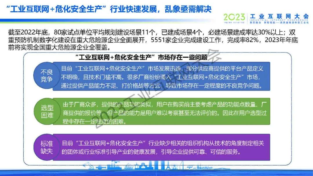 6月15日,在2023工業(yè)互聯(lián)網(wǎng)大會“工業(yè)互聯(lián)網(wǎng)+危化安全生產(chǎn)數(shù)字化轉(zhuǎn)型論壇”上,中國信息通信研究院泰爾終端實驗室戰(zhàn)略部業(yè)務(wù)主管/高級工程師朱玥發(fā)表了《“工業(yè)互聯(lián)網(wǎng)+危化安全生產(chǎn)”評估體系構(gòu)建》的主題演講。