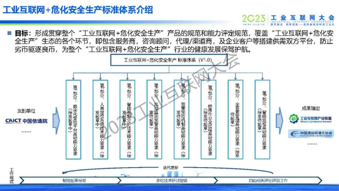 工業(yè)互聯(lián)網(wǎng)+危化安全生產(chǎn)標(biāo)準(zhǔn)體系的目標(biāo)是形成貫穿整個“工業(yè)互聯(lián)網(wǎng)+危化安全生產(chǎn)”產(chǎn)品的規(guī)范和能力評定規(guī)范,覆蓋“工業(yè)互聯(lián)網(wǎng)+危化安全生產(chǎn)”生態(tài)的各個環(huán)節(jié),即包含服務(wù)商,咨詢顧問,代理/渠道商,及企業(yè)客戶等搭建供需雙方平臺,防止劣幣驅(qū)逐良幣,為整個“工業(yè)互聯(lián)網(wǎng)+危化安全生產(chǎn)”行業(yè)的健康發(fā)展保駕護(hù)航。