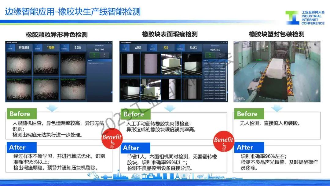 董天翔分享了supOS跨行業、跨領域的3個典型應用場景:商用汽車行業總裝&入庫基于VIN碼的品質控制與追溯、石油化工行業丁基橡膠多工序成品外觀檢驗、焦化行業安全生產與裝置巡檢。