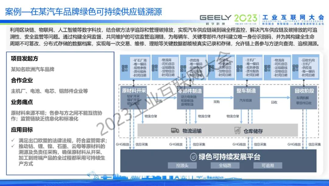 6月16日,在2023工業互聯網大會“工業互聯網+區塊鏈創新發展論壇”上,無錫吉利數字科技有限公司產品總監賽磊發表了《基于區塊鏈的工業互聯網產業供應鏈溯源云平臺實踐》的主題演講。