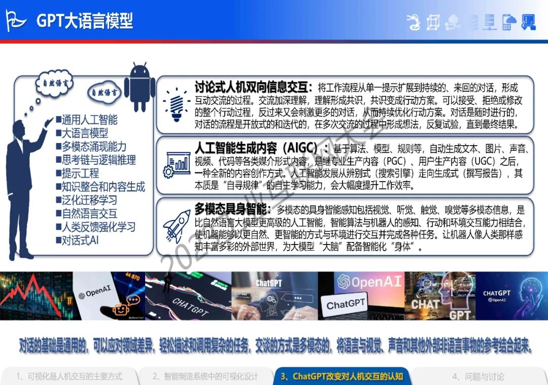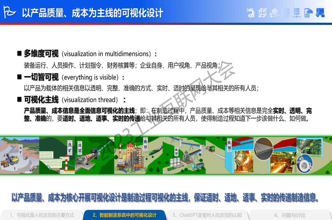 他表示,目前的人機交互功能都是遵循機器語言設計,這不僅技術門檻高,且效率低下。需要開發其他技術滿足需求。與人類自如交互的多模態大模型已經達到了謹慎可用程度,意味著人機交互又新增了一個新賽道道、新手段、新模式。通用人工智能進入智能制造過程,包括即時知識支撐、操業導航、基礎材料匯聚、多源信息整合、決策支持建議等,甚至及時發出控制動作指令。