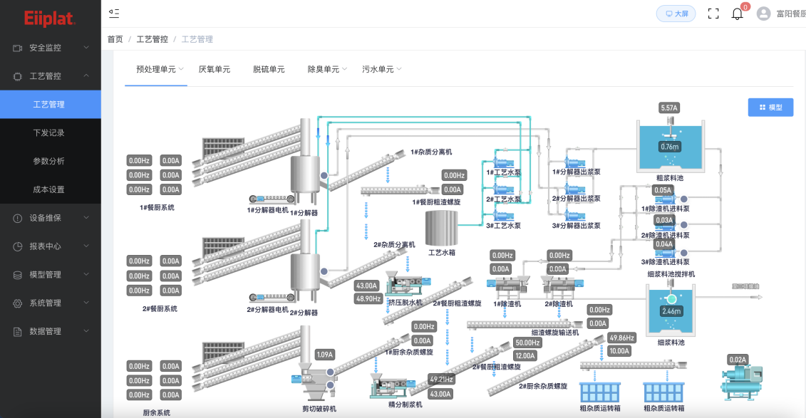 富陽區(qū)循環(huán)經(jīng)濟(jì)產(chǎn)業(yè)園餐廚垃圾處置項(xiàng)目內(nèi)各工藝單元運(yùn)行情況良好、各類數(shù)據(jù)采集相關(guān)傳感器、智能網(wǎng)關(guān)硬件設(shè)施完備,以此為基礎(chǔ)利用數(shù)字技術(shù)賦能富陽區(qū)循環(huán)經(jīng)濟(jì)產(chǎn)業(yè)園餐廚垃圾處置項(xiàng)目降碳。