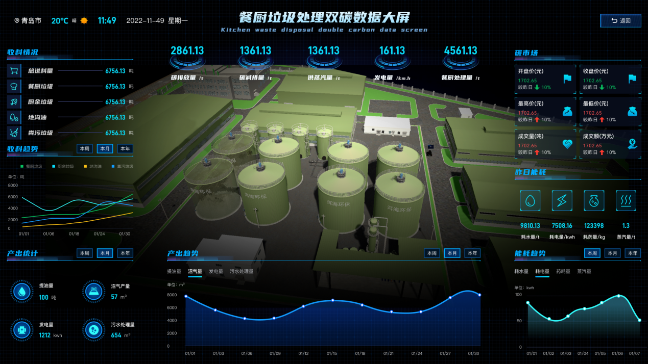 利用數(shù)字技術(shù)賦能垃圾處置廠降碳解決方案案例應(yīng)用于杭州市富陽區(qū)循環(huán)經(jīng)濟(jì)產(chǎn)業(yè)園餐廚垃圾處置項(xiàng)目。項(xiàng)目位于杭州市富陽區(qū),設(shè)計(jì)規(guī)模日處理300噸餐廚/廚余垃圾,項(xiàng)目資源化利用后,年發(fā)電量700萬度、年產(chǎn)工業(yè)油脂3000噸,可實(shí)現(xiàn)項(xiàng)目減量化、無害化、資源化處置,是浙江省的重點(diǎn)示范項(xiàng)目。該項(xiàng)目工程于2020年5月開工建設(shè),2020年12月餐廚垃圾車進(jìn)場卸料,歷時(shí)7個(gè)月,實(shí)現(xiàn)了可視化、智能化、平臺(tái)化的運(yùn)營管理,用實(shí)際行動(dòng)響應(yīng)杭州提出的打造全國數(shù)字經(jīng)濟(jì)第一城的號(hào)召。