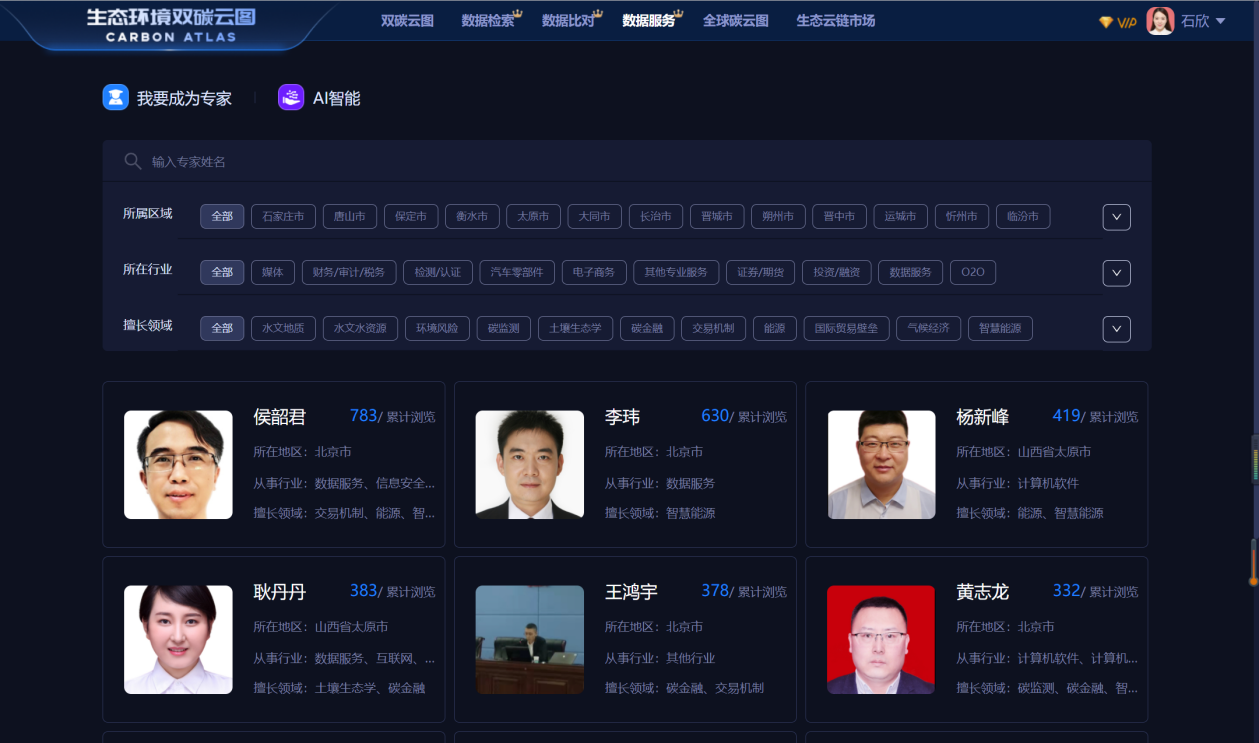 大數據服務方面,基于“雙碳”政策變化大、企業環保履責把控難的風險,推出生態環境雙碳大數據服務。生態環境雙碳云圖匯聚了環境、碳相關多種數據,結合環境和雙碳相關政策解讀以及相關問題,提供一站式咨詢和數據服務,幫助綠色金融放貸商業銀行實時掌握相關數據,對關鍵數據指標(排污許可、排污指標實際值、碳排放量等)進行預警。另外,結合常規大氣污染源排放特點、企業能源消耗、原材料消耗,分析其內在關聯,制定綠色金融支持模式,從工業產業鏈的源頭促進綠色資金驅動市場發展,通過金融手段促進企業技術轉型升級為“雙碳”目標。