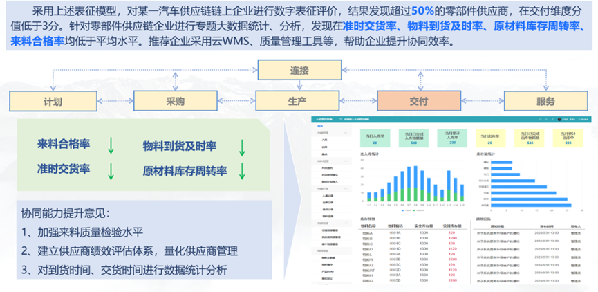 為提升汽車(chē)供應(yīng)鏈協(xié)同效率,重慶工業(yè)大數(shù)據(jù)創(chuàng)新中心針對(duì)未進(jìn)行供應(yīng)數(shù)字化轉(zhuǎn)型或轉(zhuǎn)型不徹底的企業(yè),通過(guò)全鏈條平臺(tái)產(chǎn)品或模塊化產(chǎn)品,實(shí)現(xiàn)企業(yè)的供應(yīng)鏈數(shù)字化轉(zhuǎn)型。針對(duì)已具有數(shù)字化供應(yīng)鏈企業(yè),則利用大數(shù)據(jù)、人工智能、區(qū)塊鏈、數(shù)字孿生等技術(shù),通過(guò)智能供應(yīng)鏈管理產(chǎn)品,實(shí)現(xiàn)企業(yè)的供應(yīng)鏈智能化。