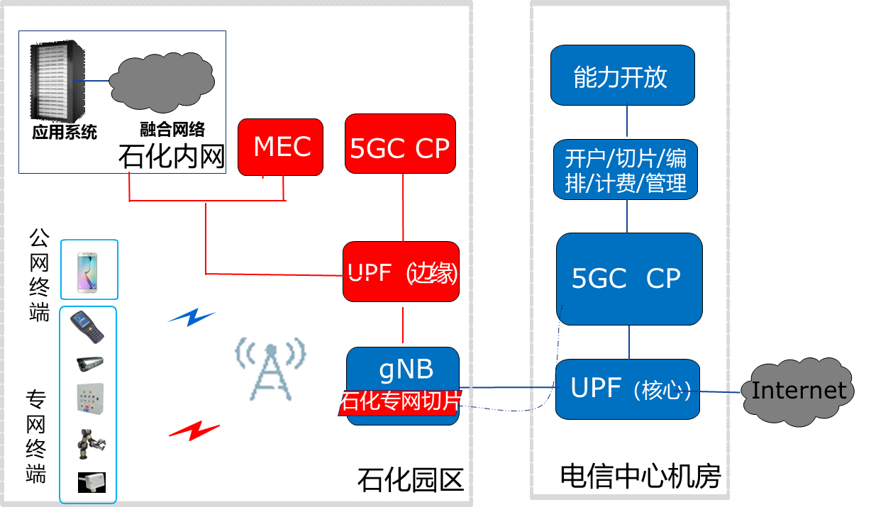 a)“5G+物聯網+邊緣”的煉化企業網絡融合架構
