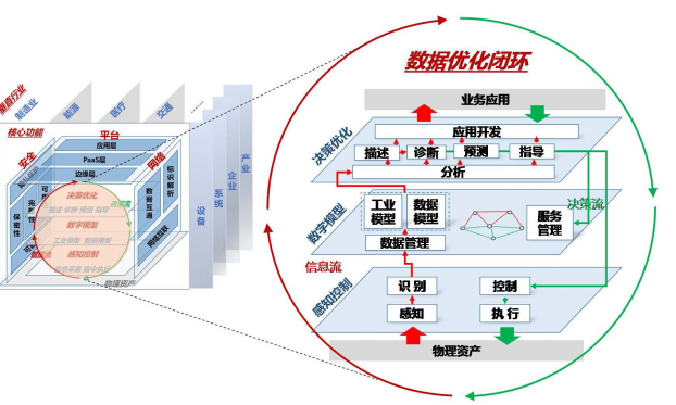 AII體系架構(gòu)2.0模型提出用工業(yè)互聯(lián)網(wǎng)平臺(tái)技術(shù),構(gòu)建大數(shù)據(jù)閉環(huán)優(yōu)化,感知、預(yù)測(cè)、優(yōu)化企業(yè)經(jīng)營(yíng)