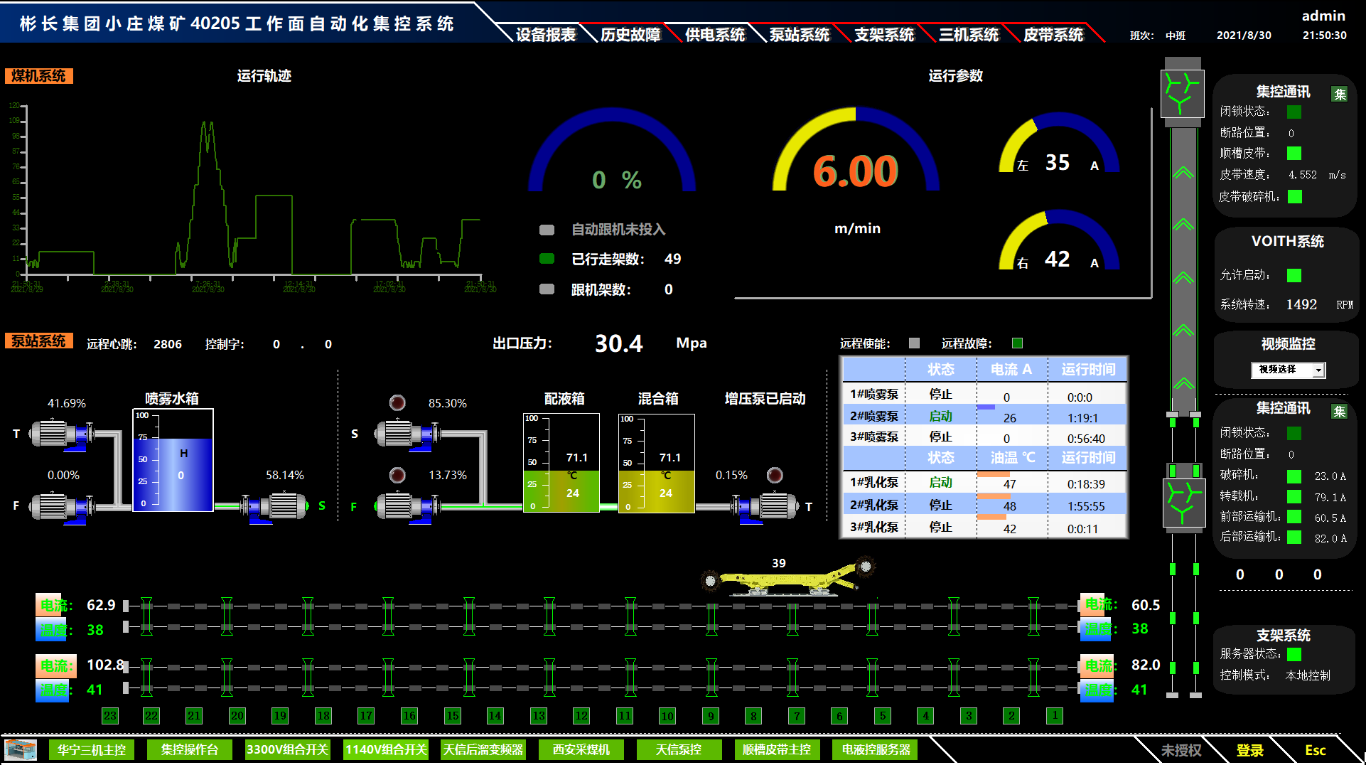 實現直線度檢測、防碰撞檢測控制功能;采煤機實現人員接近自動停機功能;與工作面地質保障系統聯動,實現采煤機自適應割煤功能;刮板輸送機實現鏈條自動張緊功能;膠帶輸送機實現異物檢測和帶速智能調節功能;工作面實現基于煤塵監測的智能噴霧降塵功能。