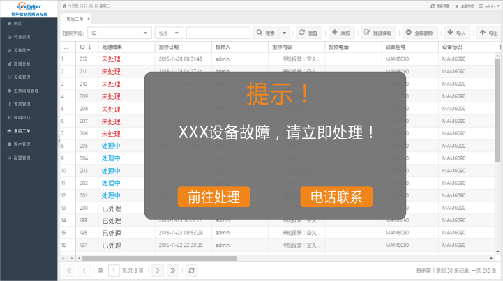 與鍋爐物聯網系統進行數據聯動,客戶來電時即可彈屏該客戶對應設備信息。