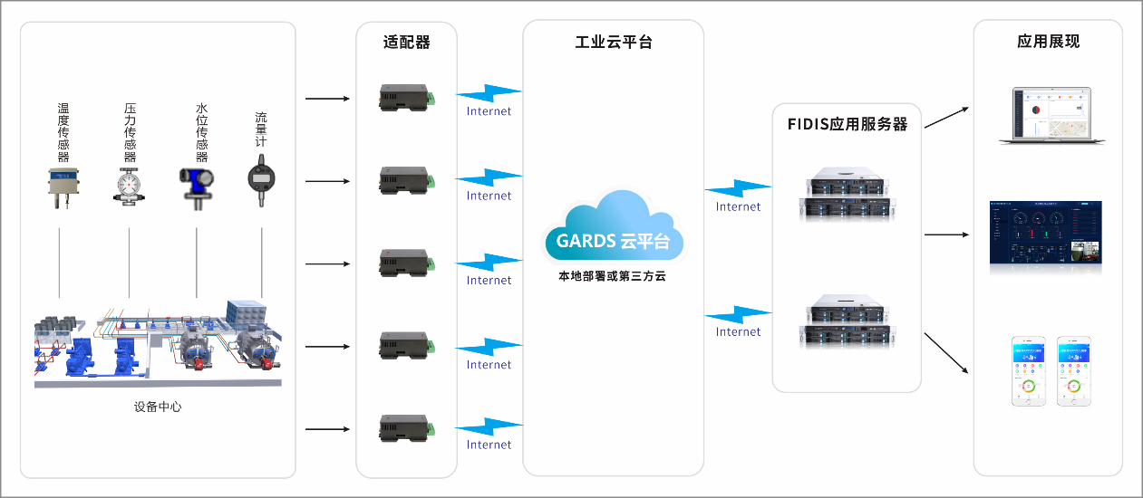項目運用IIOT技術,包括數據采集適配器研制,大數據分析平臺以及一體化的管網監控平臺研發,旨在實現鍋爐設備的統一聯網功能、信息共享、智能化。將安裝的可編輯適配器終端在保持原有設備的前提下,通過數據采集裝置和控制器,去兼容適配鍋爐設備,并將搜集和梳理的數據整合處理后上報至物聯網云平臺,同時接收物聯網云平臺發送的控制指令,將控制指令信息發送至現場的鍋爐工業設備,可進行遠程后臺對數據的實時在線分析和監控管理。后臺端大數據處理量化,將以手機APP、液晶大屏顯示和電腦將信息展示在用戶面前,并且平臺能夠自動判別鍋爐設備故障類型、得到設備故障風險預警時間,實現智能化生產、定位、追蹤、監控、故障報警、設備故障預警和設備一體化管理。