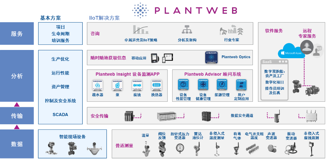 實(shí)時(shí)的數(shù)據(jù)、專家知識(shí)和移動(dòng)應(yīng)用是工業(yè)物聯(lián)網(wǎng)的基礎(chǔ),Plantweb數(shù)字生態(tài)系統(tǒng)不僅包括范圍廣泛的傳感器網(wǎng)絡(luò)和網(wǎng)絡(luò)安全工具,還包括軟件應(yīng)用、數(shù)據(jù)分析和IIoT相關(guān)的咨詢及服務(wù),旨在提高過程可靠性、能源效率、安全和整體運(yùn)營(yíng)性能,幫助企業(yè)有針對(duì)性地向著可衡量的目標(biāo),逐步實(shí)施數(shù)字化轉(zhuǎn)型,實(shí)現(xiàn)卓越運(yùn)營(yíng)。
