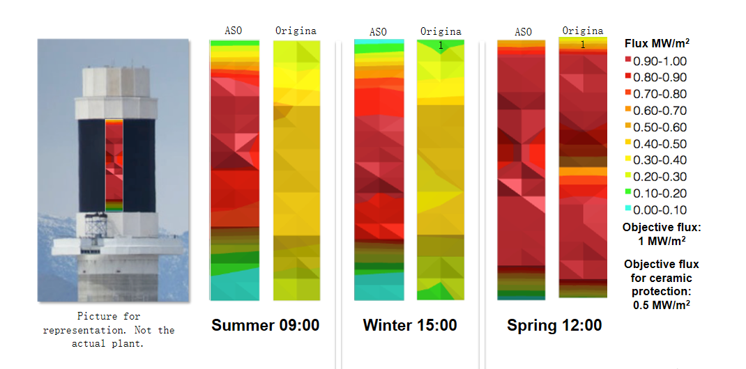 最大限度地提高總的熱輸出和攝入潛力,實現(xiàn)均勻的吸熱器溫度,降低熱應力并延長吸熱器壽命。最大限度地加快吸熱器預熱時間,使電廠更快的啟動。