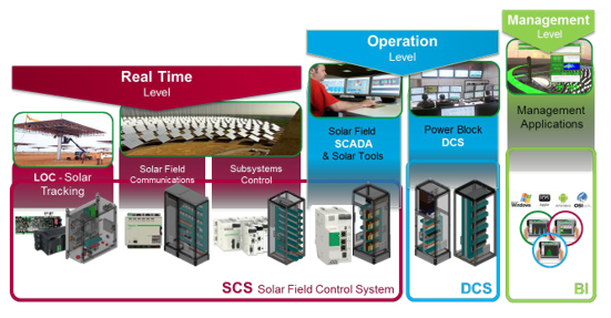 本解決方案適用于槽式、塔式、菲涅爾式光熱發(fā)電廠。提供了從太陽島鏡場控制、儲換熱控制、發(fā)電島控制、全廠運行優(yōu)化控制、仿真模擬系統(tǒng)以及在塔式類型電廠里的校準控制等等。