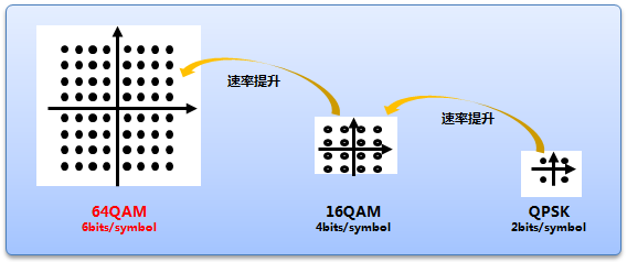 上行64QAM是QPSK(Quadrature Phase Shift Keying)和16QAM的一個補充調制方案。UL 64QAM旨在增加好信道條件下UE的比特率。使用QPSK時,每符號承載兩信息比特;使用16QAM時,每符號承載四信息比特。使用64QAM時,每符號可以進行六信息比特調制。因此,64QAM可以極大提高上行的系統容量。